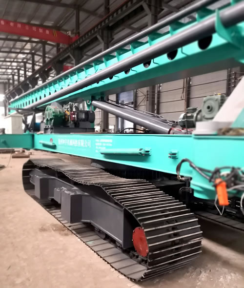 近年來,隨著樁機(jī)市場的不斷發(fā)展,對樁機(jī)的要求也是日新月異。為了滿足現(xiàn)場對樁機(jī)的快速短程轉(zhuǎn)場要求,我公司開發(fā)了新型液壓馬達(dá)驅(qū)動(dòng)式履帶底盤樁機(jī)。該樁機(jī)在步履式樁機(jī)的基礎(chǔ)上改進(jìn)發(fā)展而來,在繼承以下特點(diǎn)的基礎(chǔ)上又增加了新的功能特點(diǎn):